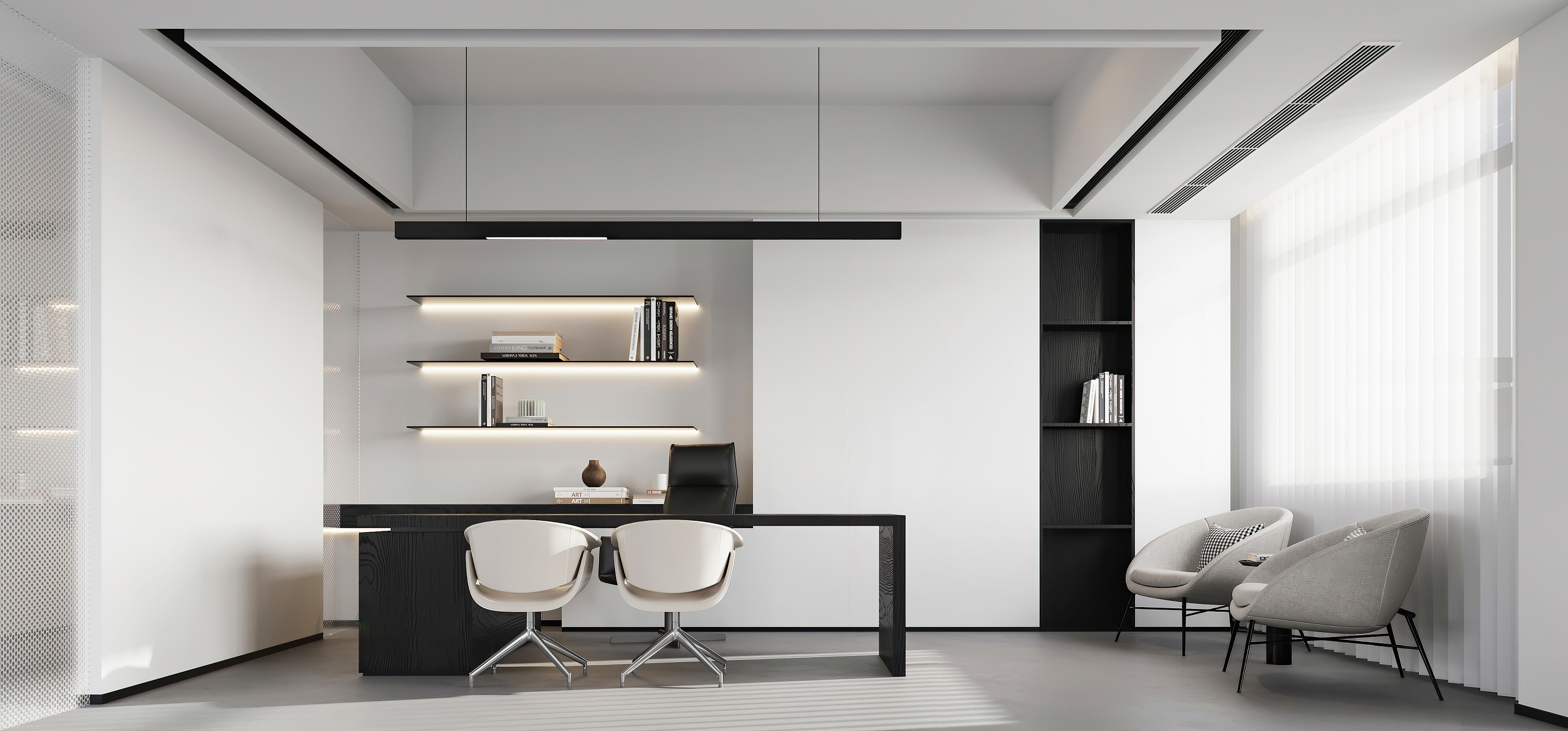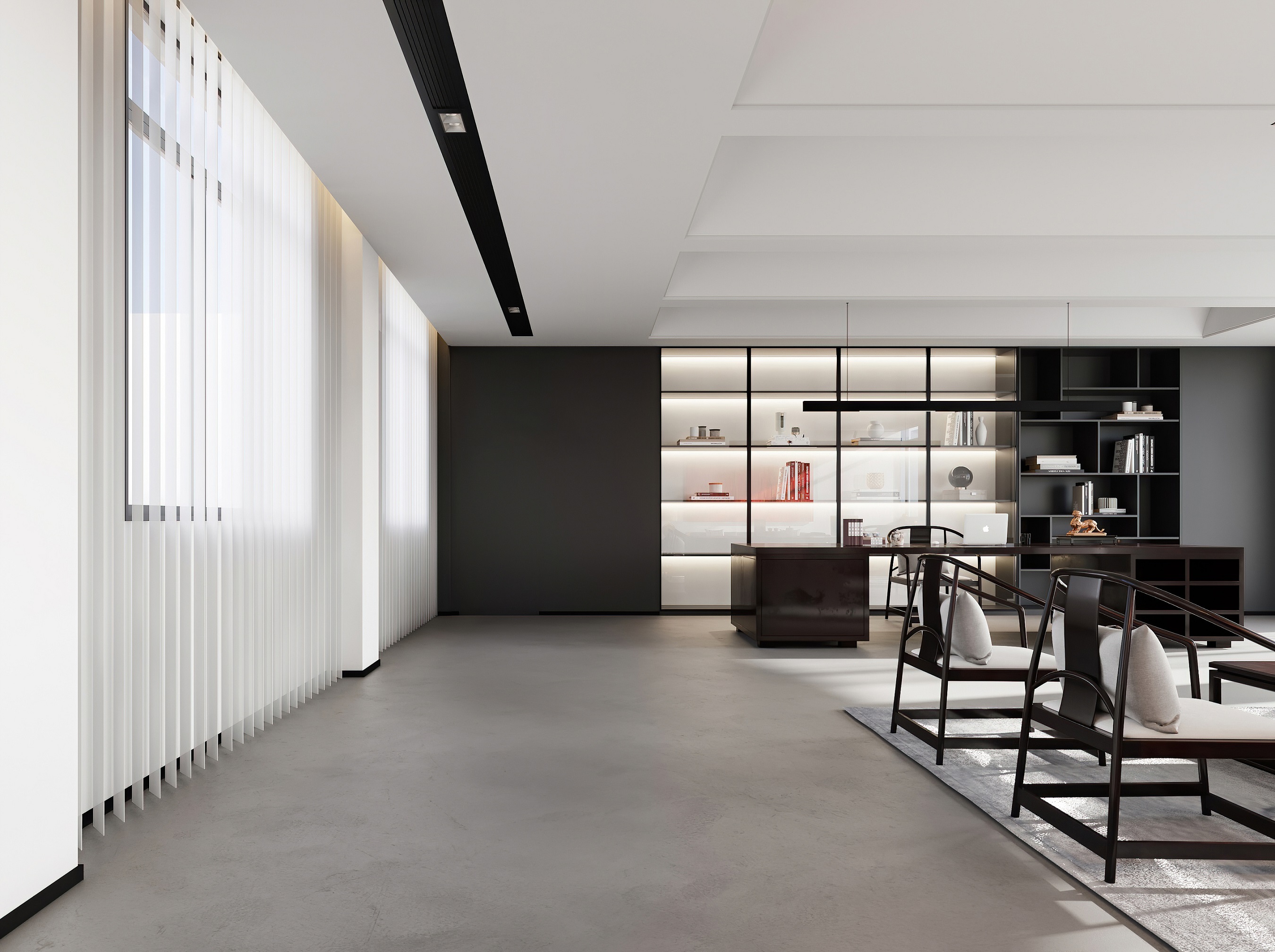 案例說明: 本案在這個辦公室設計中,甲方要求,有功能區設置,有總經理,總經理是本公司中最高的職務,所以在我的設計中給他選擇了一個比較好的朝向,采光比較好、地面采用仿古顯紋復合強化淺色木地板。防滑耐磨。幾何式的辦公桌莊嚴不失人性化。自然的美巧妙的運用到設計之中,突顯對美好生活的向往。放松工作時的狀態,副總經理兩間,裝修風格跟總經理相符,比較統一。會議室,在平面功能上。考慮了合理的行動路線,東面墻對應窗的位置設計了落地的玉砂玻璃隔墻,以滿足展示區的采光要求。