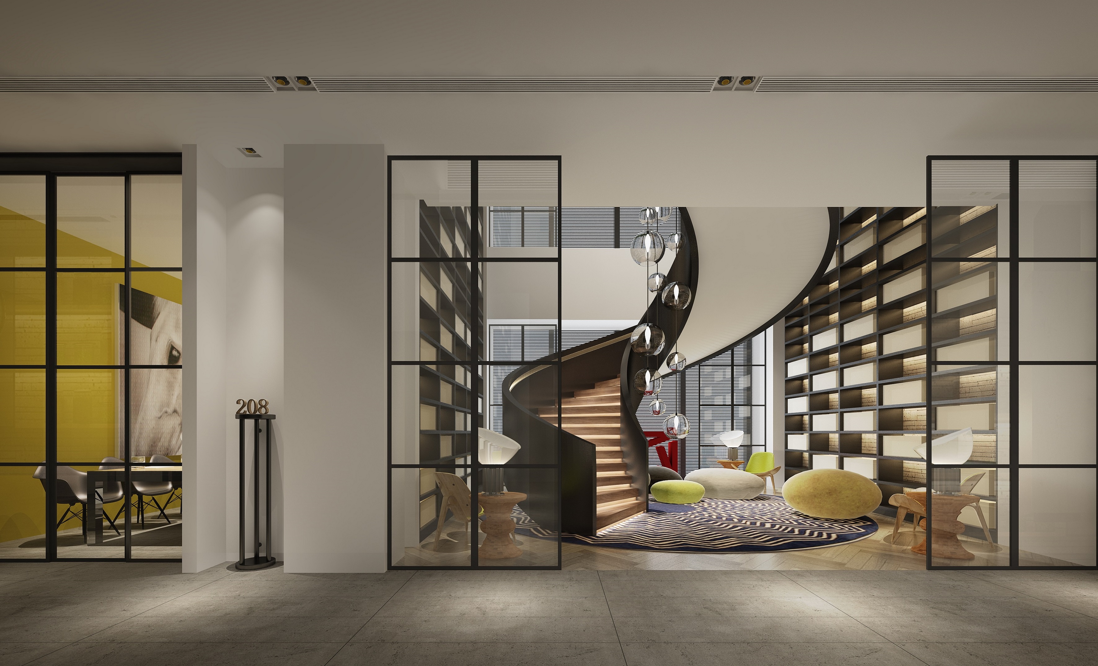 案例說明:本案強調功能性設計,線條簡約流暢,色彩對比強烈,這是現代風格的特點。此外,大量使用鋼化玻璃、不銹鋼等新型材料作為輔材,也是現代風格的常見裝飾手法,能給人帶來前衛、不受拘束的感覺。由于線條簡單、裝飾元素少,現代風格需要完美的軟裝配合,才能顯示出美感。