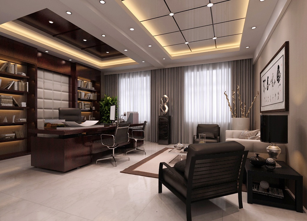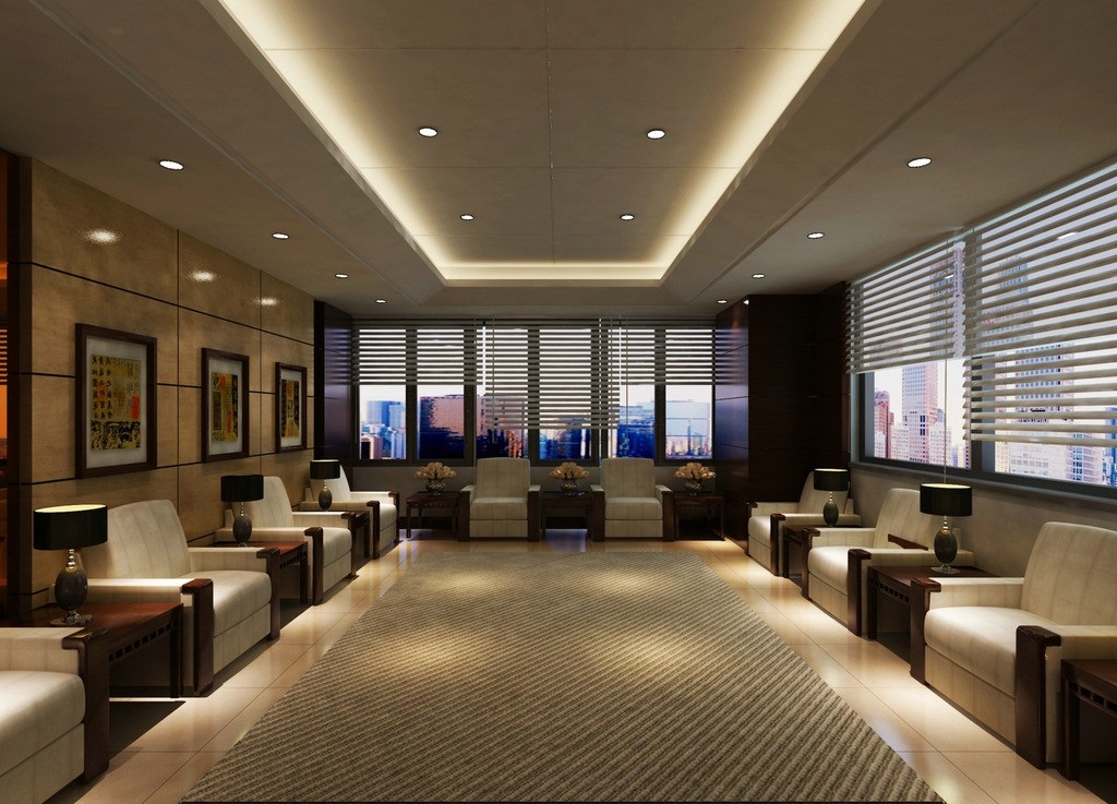 案例說明:本案設計為突顯建筑開間較舒適之優點,設計師特意設計了過道各柱體間鑲嵌不銹鋼條及玻璃幕墻上的磨砂條來點綴的裝修主題,同時,地面用拼花色帶打破,與方正而美觀的吊頂上下呼應;辦公室靠近走道的墻面,為將自然光透入走道,同時又加強其“靈透”感,采用清玻幕墻,幕墻上的磨砂條既打破了玻璃墻面的呆板,又提醒了行人幕墻的存在,防止無意識碰頭、沖撞等類似意外發生;為辦公室的后續私密性考慮,其清玻幕墻內掛以百葉窗遮擋既可。