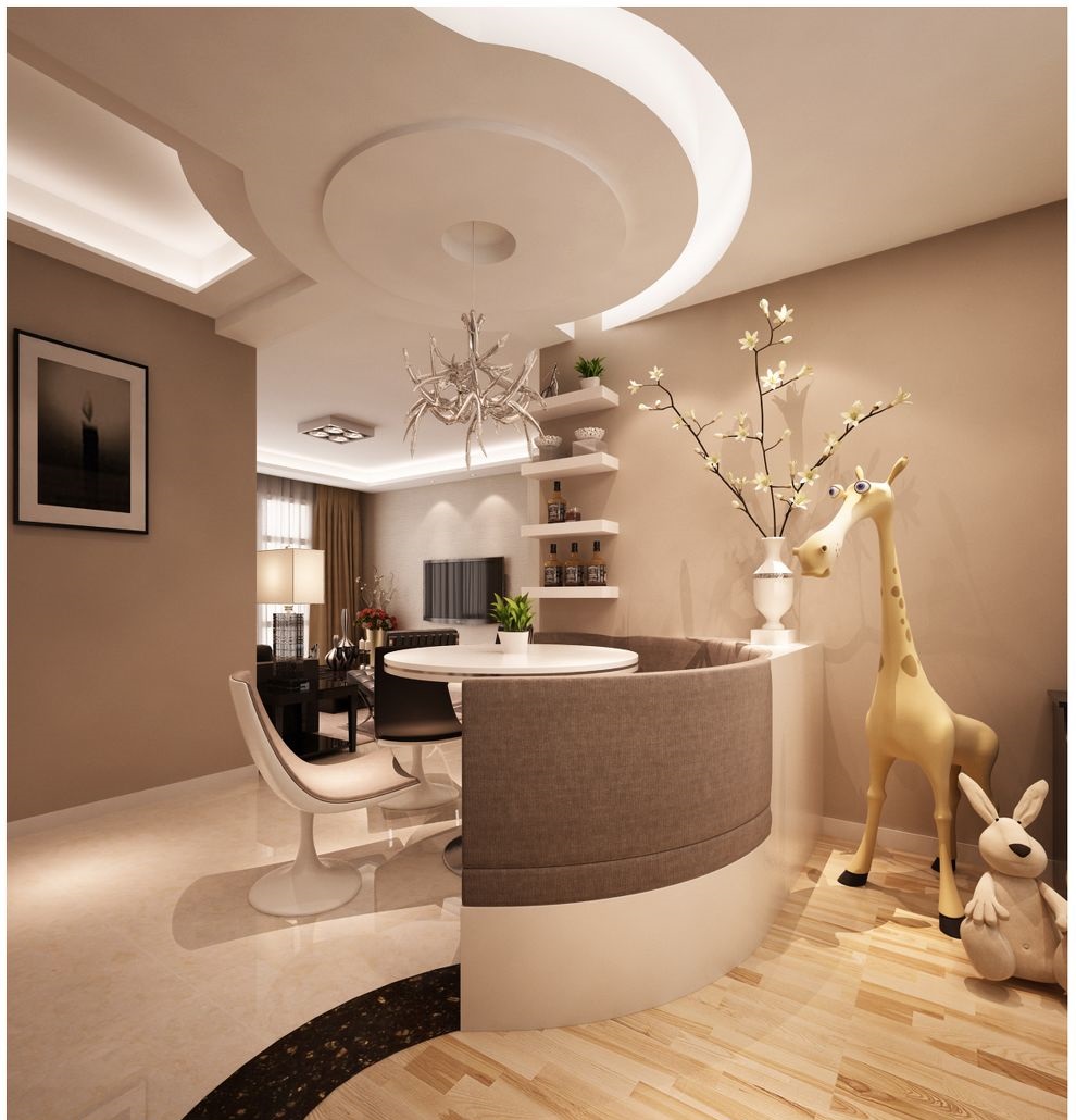 案例說明:本案在設計中因為空間較寬敞,加之衛(wèi)生間門的開向正對室內(nèi),特設計了展示性隔斷柜,加強其辦公、會客及生活的區(qū)域性,既做到了空間上的劃分,又可通過展示柜內(nèi)的擺設輔助室內(nèi)布置呈現(xiàn)事業(yè)風貌及個人雅興,體現(xiàn)其穩(wěn)重而時尚的人性化的特點。