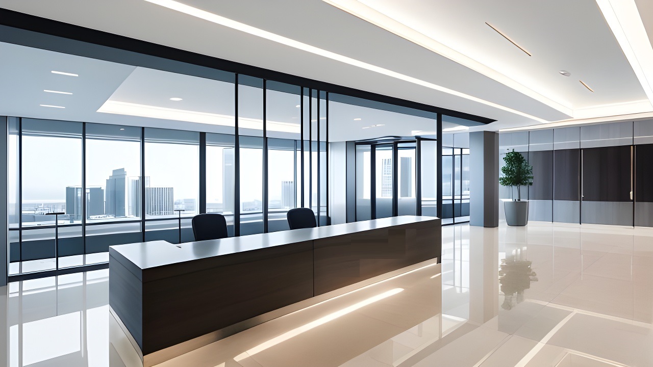 * 間接照明為王道: LED燈帶/線性燈藏于天花凹槽、窗簾盒上方或高柜頂部,通過(guò)照亮天花和墻面形成舒適、無(wú)眩光的“發(fā)光天幕”效果,模擬自然天空光,是上海高端辦公室的主流選擇。
